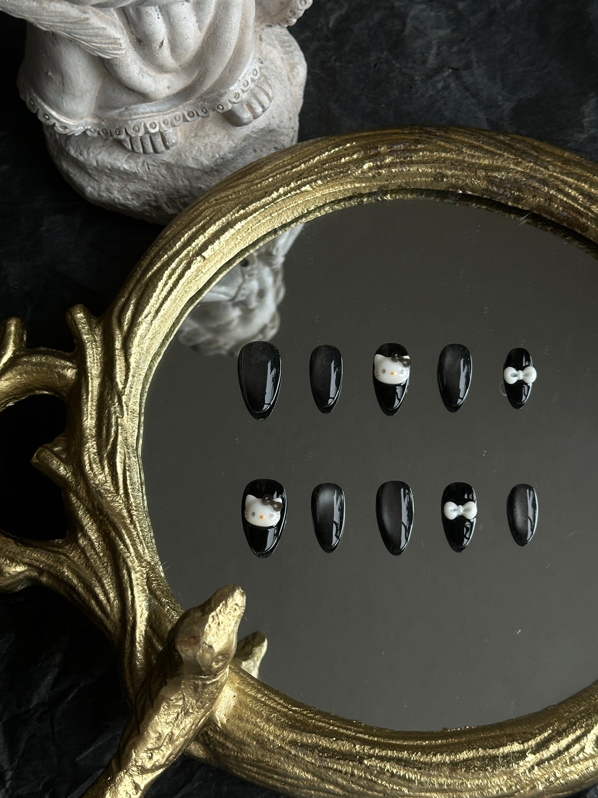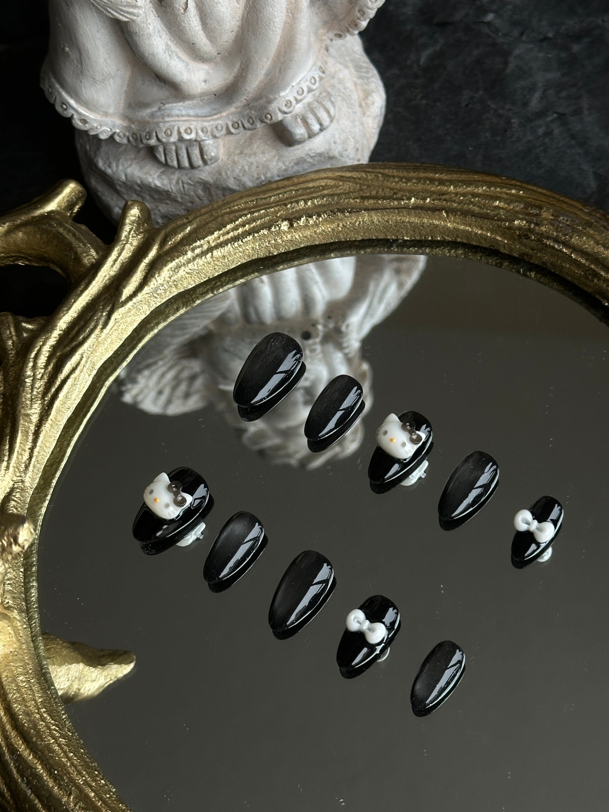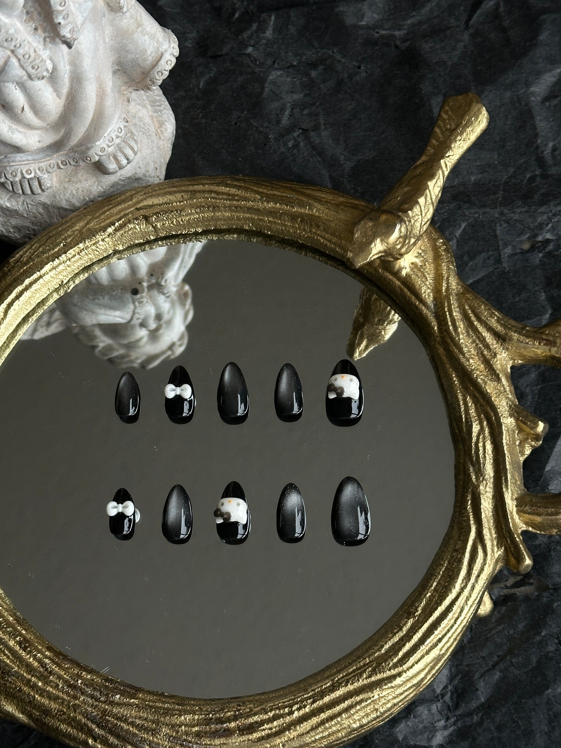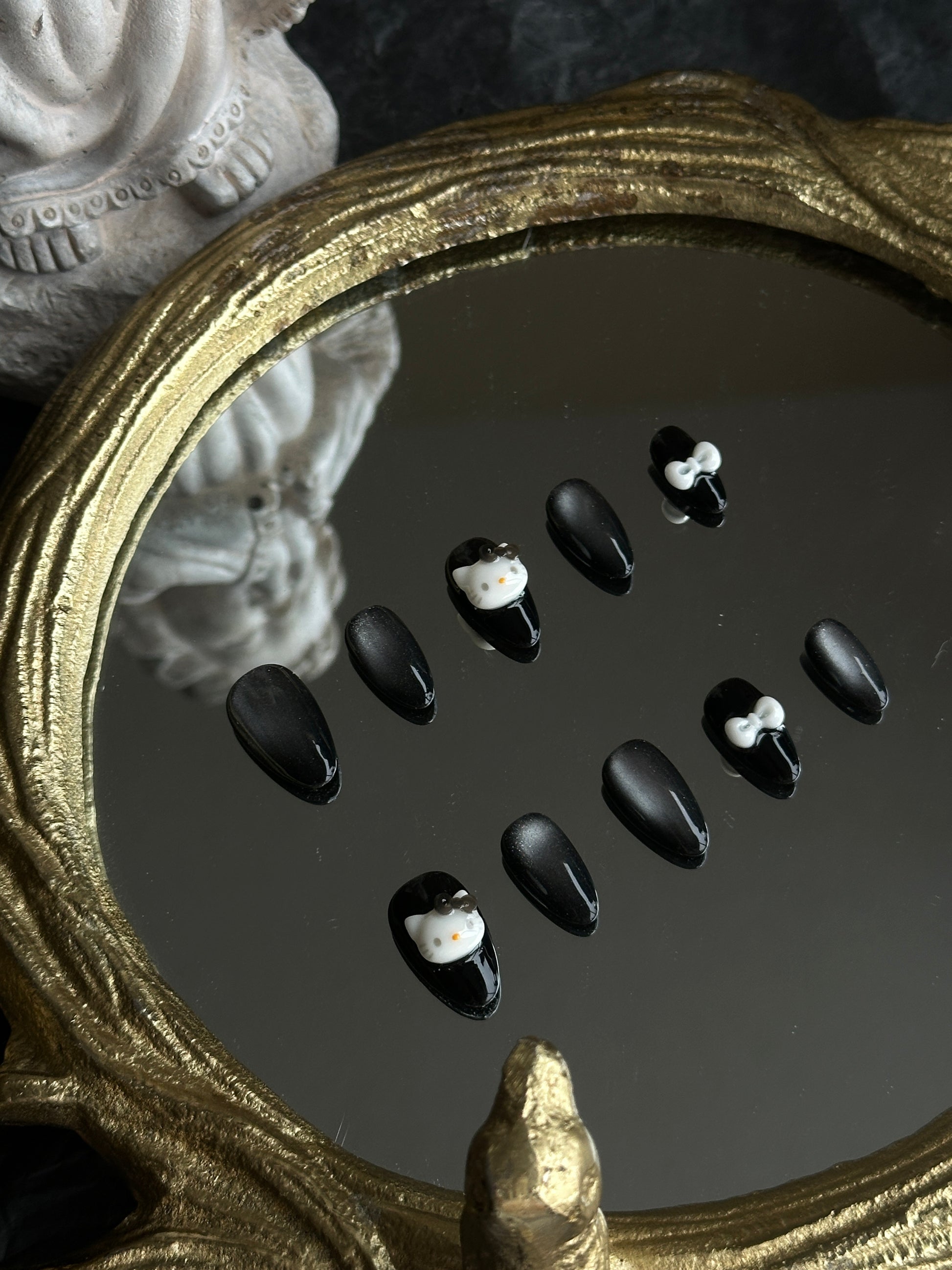 A cosmic twist on the classic black manicure — Galaxy Kitty brings the mysterious shimmer of the night sky to your fingertips. The silver cat-eye glow dances like distant stars, while the tiny kitty detail adds a touch of playful charm. Perfect for anyone who loves a balance of cute and cool.